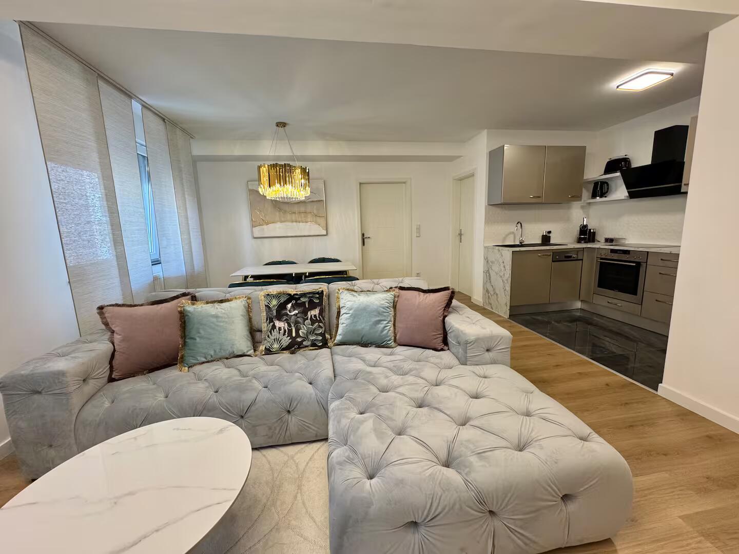 Luxuriöses Apartment im Herzen Nürnbergs, ideal für anspruchsvolle Reisende. Modernes Design trifft auf erstklassige Ausstattung: voll ausgestattete Küche, Regendusche, gemütlicher Wohnbereich und ein Kingsize-Bett für erholsame Nächte. Schnelles WLAN und Smart-TV bieten zusätzlichen Komfort. Perfekt gelegen, nur Minuten zur Altstadt, Top-Restaurants und Sehenswürdigkeiten. Genießen Sie eine elegante Unterkunft für Business- oder Freizeitreisen – stilvoll, zentral und komfortabel!